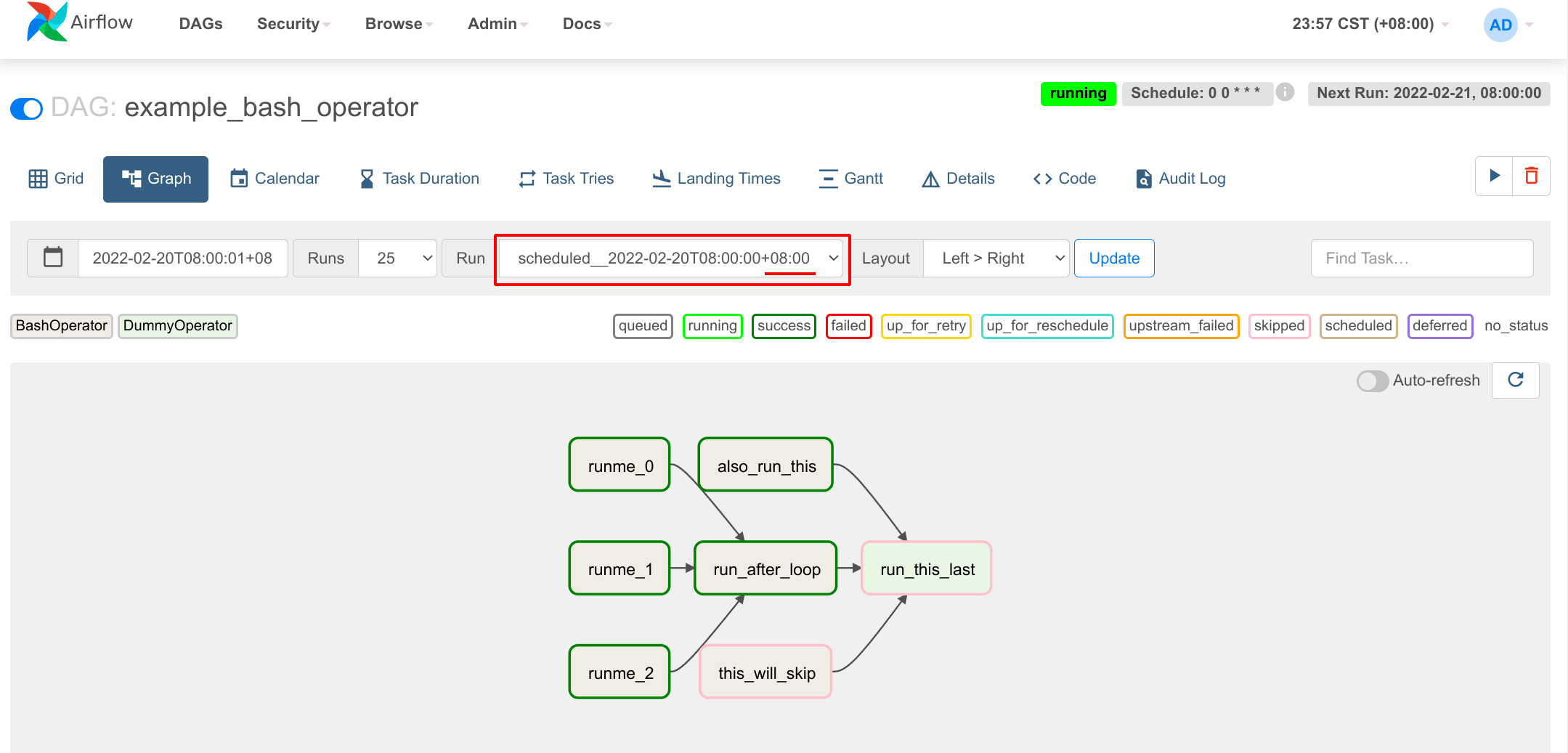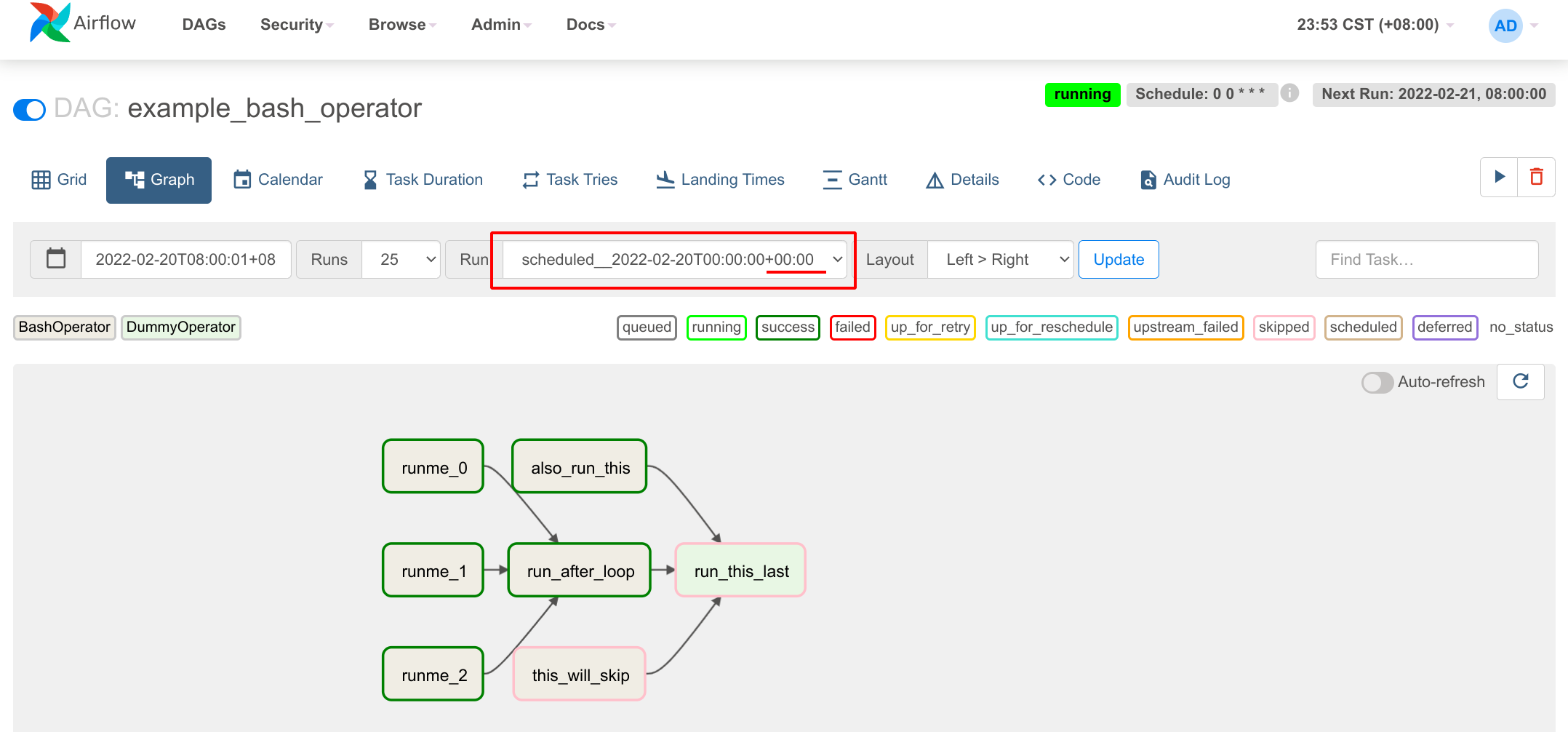 The execution date is displayed using the time zone setting instead of always +00:00. default_timezone = Asia/Shanghai | before | after| | -- | -- |  |  Just better viewing <!-- Thank you for contributing! Please make sure that your code changes are covered with tests. And in case of new features or big changes remember to adjust the documentation. Feel free to ping committers for the review! In case of existing issue, reference it using one of the following: closes: #ISSUE related: #ISSUE How to write a good git commit message: http://chris.beams.io/posts/git-commit/ --> --- **^ Add meaningful description above** Read the **[Pull Request Guidelines](https://github.com/apache/airflow/blob/main/CONTRIBUTING.rst#pull-request-guidelines)** for more information. In case of fundamental code change, Airflow Improvement Proposal ([AIP](https://cwiki.apache.org/confluence/display/AIRFLOW/Airflow+Improvements+Proposals)) is needed. In case of a new dependency, check compliance with the [ASF 3rd Party License Policy](https://www.apache.org/legal/resolved.html#category-x). In case of backwards incompatible changes please leave a note in [UPDATING.md](https://github.com/apache/airflow/blob/main/UPDATING.md). -- This is an automated message from the Apache Git Service. To respond to the message, please log on to GitHub and use the URL above to go to the specific comment. To unsubscribe, e-mail: [email protected] For queries about this service, please contact Infrastructure at: [email protected]