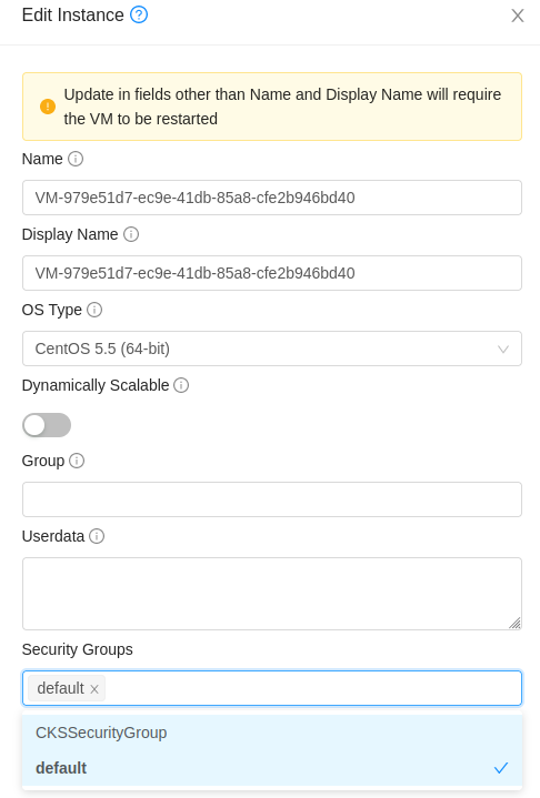 ### Description This PR provides a means of updating a stopped VM with security groups. <!--- Describe your changes in DETAIL - And how has behaviour functionally changed. --> <!-- For new features, provide link to FS, dev ML discussion etc. --> <!-- In case of bug fix, the expected and actual behaviours, steps to reproduce. --> <!-- When "Fixes: #<id>" is specified, the issue/PR will automatically be closed when this PR gets merged --> <!-- For addressing multiple issues/PRs, use multiple "Fixes: #<id>" --> <!-- Fixes: # --> <!--- ********************************************************************************* --> <!--- NOTE: AUTOMATATION USES THE DESCRIPTIONS TO SET LABELS AND PRODUCE DOCUMENTATION. --> <!--- PLEASE PUT AN 'X' in only **ONE** box --> <!--- ********************************************************************************* --> ### Types of changes - [ ] Breaking change (fix or feature that would cause existing functionality to change) - [ ] New feature (non-breaking change which adds functionality) - [ ] Bug fix (non-breaking change which fixes an issue) - [X] Enhancement (improves an existing feature and functionality) - [ ] Cleanup (Code refactoring and cleanup, that may add test cases) ### Feature/Enhancement Scale or Bug Severity #### Feature/Enhancement Scale - [ ] Major - [X] Minor ### Screenshots (if appropriate): ### How Has This Been Tested? Advanced Zone with Security Groups: - Provision to select multiple security groups:  - Displays the security groups associated with the VM as a space separated list in the Details tab of the VM:  - Ensured that the fields do not appear in the Advanced zone Tabs <!-- Please read the [CONTRIBUTING](https://github.com/apache/cloudstack/blob/main/CONTRIBUTING.md) document --> -- This is an automated message from the Apache Git Service. To respond to the message, please log on to GitHub and use the URL above to go to the specific comment. To unsubscribe, e-mail: [email protected] For queries about this service, please contact Infrastructure at: [email protected]
