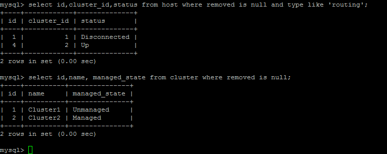 7. Try to change the cluster which has higher "id" to managed state. Cluster