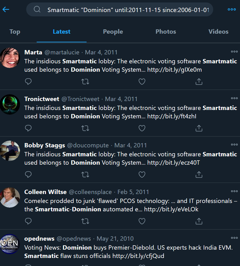 https://mobile.twitter.com/realDonaldTrump/status/1328200072987893762 I WON THE ELECTION! 8:55 PM - 15 Nov 2020 https://mobile.twitter.com/hashtag/ReleaseTheKraken #ReleaseTheKraken https://mobile.twitter.com/CodeMonkeyZ/status/1328206966238298112 https://gab.com/codemonkey https://trends.google.com/trends/explore?geo=US&q=change%20dominion%20vote https://pbs.twimg.com/media/Em687etVcAgGZ5W.jpg Google search trends spiked for "change dominion vote" in early summer, 2020. "Yes, I have heard the rumors of an alleged Dominion whistleblower who may have leaked the Dominion Democracy Suite source code to the dark web. No, I DONT want a copy of it. If you try to send it to me, I will block you. Dont send me any illegally obtained files or data." https://www.whitehouse.gov/presidential-actions/executive-order-imposing-certain-sanctions-event-foreign-interference-united-states-election/ Down... https://heavy.com/news/scytl-server-germany-raid/ https://scytl.com/ "Congressman Louie Ghomert has stated that The U.S. Army has seized servers for Dominion in Germany." https://www.youtube.com/watch?v=xQmfLDeghpI https://mobile.twitter.com/GOPPollAnalyst https://pbs.twimg.com/media/Em6dzkpUwAEBlSw.png "Searching twitter history and you can find many references going back to as early as 2009 about deals between Dominion, Smartmatic, Comelec and even Diebold. See it now before its scrubbed. Shout out to @GOPPollAnalyst for bringing this to my attention." https://www.theepochtimes.com/trump-lawyer-sidney-powell-were-getting-ready-to-overturn-election-results-in-multiple-states_3579599.html https://www.zerohedge.com/political/trump-lawyer-sidney-powell-were-getting-ready-overturn-election-results-multiple-states https://www.realclearpolitics.com/video/2020/11/15/trump_lawyer_sidney_powell_cia_director_powell_should_be_fired_for_ignoring_warnings_about_dominion_voting_system.html https://www.washingtonexaminer.com/news/trump-attorney-sidney-powell-says-they-are-fixing-to-overturn-the-results-of-the-election-in-several-states https://www.youtube.com/watch?v=O2LNAn6ktVY https://www.youtube.com/watch?v=YVxi0WYHtBY https://vimeo.com/479556266 https://www.youtube.com/watch?v=rNQNw6ecRtc https://www.youtube.com/watch?v=DKXMypeXnAU https://www.youtube.com/watch?v=UMMlR007Ksc "A member of President-elect Joe Biden's transition team, Peter Neffenger, is also a member of the board of directors for a company that committed election fraud that could cause the results of the 2020 election to be overturned." "He is president and on the board of directors of Smartmatic, and it just so happens he's on Mr. Biden's presidential transition team that's going to be nonexistent, because we're fixing to overturn the results of the election in multiple states,' said Powell during an appearance on Sunday Morning Futures with Maria Bartiromo. President Trump won not just hundreds of thousands of votes but by millions of votes that were shifted by this software that was designed expressly for that purpose." https://pbs.twimg.com/media/Em07wWeXYAYZFE3.jpg https://pbs.twimg.com/media/Emzzs4TWEAMF8tM.jpg https://pbs.twimg.com/media/EmzgwIjVEAA8q8I.jpg https://pbs.twimg.com/tweet_video_thumb/Em4OG_5XEAMWfUD.jpg https://pbs.twimg.com/media/Em4dESsXUAA3229.jpg https://pbs.twimg.com/media/Em0T9rgXYAAIxR-.jpg https://pbs.twimg.com/media/Em4r_JoVQAE37V9.jpg