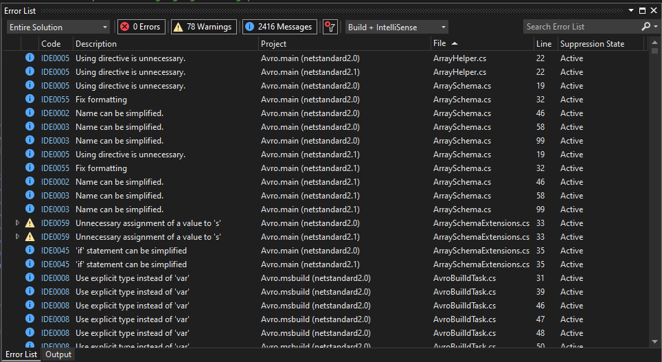 > Enable codeanalysis and intellisense (used by MS and their dotnet team):