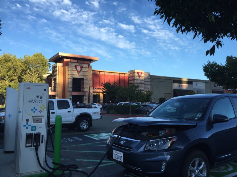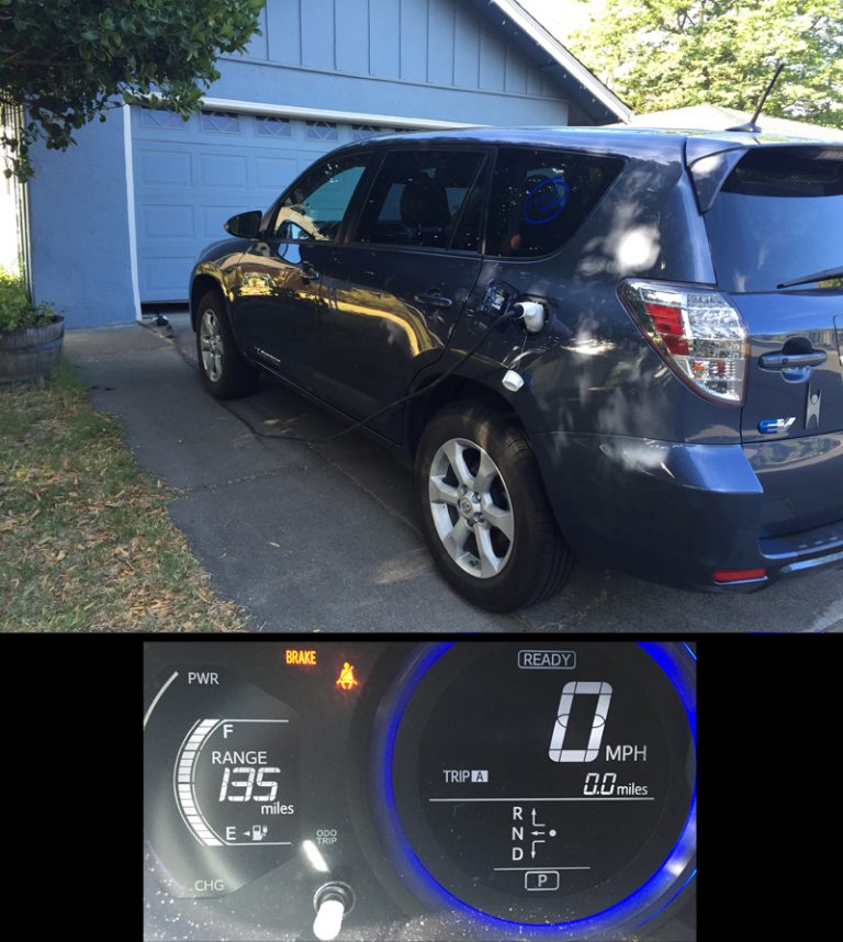 http://insideevs.com/travelogue-a-400-mile-dc-road-trip-to-monterey-in-a-toyota-rav4-ev/ Travelogue: A 400 Mile DC Road Trip to Monterey In A Toyota RAV4 EV 20160721 Stephen Noctor [images http://insideevs.com/wp-content/uploads/2016/07/DC-plugs-750x213.jpg DC Plugs http://ventricular.org/ItsElectric/wp-content/uploads/2016/06/IMG_6506-768x576.jpg The 2012 Rav4 EV comes equipped with a ‘Level 2’ charging port that charges the car on AC current at a maximum of 240 volts / 40 amps. That requires roughly 5 or 6 hours to fully charge the battery from empty. Higher power DC current can charge cars much faster. I bought a third party DC charging port, called JdeMO, that was designed, manufactured and installed by Tony Williams of Quick Charge Power. I can now charge at up to 380 volts and 125 amps. MUCH FASTER! http://ventricular.org/ItsElectric/wp-content/uploads/2016/07/30minutes-768x627.jpg A 30 minute DC charge session sent over 22 kWh to my battery pack through the JdeMO port http://ventricular.org/ItsElectric/wp-content/uploads/2016/07/MontereyRoute.jpg MontereyRoute http://ventricular.org/ItsElectric/wp-content/uploads/2016/07/Start2-768x858.jpg After driving 180 miles, with one 40 minute DC charge / lunch break, we arrived in Monterey with about 12 kWh in the pack and the GOM estimating over 40 miles of driving range http://ventricular.org/ItsElectric/wp-content/uploads/2016/07/IMG_1589.jpg We left Monterey with a full charge and the GOM guessing that we could drive 142 miles http://ventricular.org/ItsElectric/wp-content/uploads/2016/07/IMG_1628-768x576.jpg Dinner and electrons in San Rafael http://ventricular.org/ItsElectric/wp-content/uploads/2016/07/Home.jpg Home (guessometer shows 400mi) ] [image] The Road To Monterey This past weekend we took our 2012 Rav4 EV, equipped with JdeMO, on a 400 mile road trip to Monterey. The Rav4 EV has an EPA rated range of 113 miles, and Toyota sold this electric car without a ‘Level 3’ DC quick charging port. Using the standard ‘Level 2’ charging port would require about 5 hours to add 100 miles of range to the battery on a public charging station. So even starting with a full battery, a 400 mile trip would require about 15 hours of charging along the way. This seriously hamstrings the car, keeps it tethered to the garage, and effectively makes it useless for long trips…. unless you have a tremendous amount of patience. In my opinion, an effective EV needs to be able to charge on both standard ‘Level 2’ and DC quick chargers. For the average person Level 2 charging will take care of the bulk of our charging needs for commuting to work and driving around town, while DC quick chargers will be very useful for longer trips and weekend excursions. This post relates an example of how DC quick charging makes traveling in an EV much easier. Editor’s Note: Steve also has a blog where you can learn more about his adventures with the Toyota RAV4 EV (something of a rarity these days) – here. A Quick Word on Levels for those unfamiliar with charging an EV here’s a quick primer: ‘Level 1‘ charging is when you plug into a 110 volt outlet that you’d normally use for a lamp. Charging my Rav on a 110V outlet adds about 3 miles of driving range per hour of charging, would take over 40 hours to fully charge the battery, or 16 hours just to cover my daily 50 mile roundtrip commute. Nice to have that option, but not surprisingly I don’t use Level 1 charging. ‘Level 2‘ charging uses 200 – 240 volts and up to 40 amps for the Rav4 EV. A typical public charging station provides 208 volts and 30 amps, for about 6 to 7 kW of power. This yields about 20 miles of range per hour of charging, and is perfectly fine for the vast majority of my driving needs: commuting to work, running errands, etc. During a typical work week I charge every other day for 4 or 5 hours on Level 2. Many people who drive EVs charge their cars in the garage overnight while they sleep, so they wake up fully charged and ready to go. ‘Level 3‘ charging, or DC quick charging, comes in various forms. For example, the Nissan Leaf has a CHAdeMO port, the BMW i3 and Chevy Spark have the J1772 Combo port, and Tesla cars have their own proprietary charging port. See the corresponding charging plugs below. DC charging stations for CHAdeMO and CCS currently provide a maximum of up to 400 volts and 125 amps, for 50 kW of power. Tesla Superchargers can provide up to 400 volts and 300+ amps for a max 135 kW of power. For a Nissan Leaf with the 24 kWh battery, Level 3 charging can provide about 60 miles of driving range in 30 minutes. DC Charging Added to the Rav4 EV The lack of a Level 3 DC charging port on the Rav was a major oversight and a serious limitation. Thankfully, Tony Williams of Quick Charge Power devised a solution to address this shortcoming. Tony sells a CHAdeMO charging port, called JdeMO, that allows Rav4 EV owners to charge their cars on the network of CHAdeMO DC chargers. I purchased JdeMO for my Rav and Tony installed it in September 2015. JdeMO changed everything for me. The capacity of the battery pack in the RAV4 EV is 41.8 kWh, it’s a bit larger than battery packs in other non-Tesla EVs. As a result the Rav4 EV with JdeMO can hold ~45 kW charge rate for a full 30 minutes charge session. On 125 amp CHAdeMO chargers, over 22 kWh will be sent to my battery pack in 30 minutes, yielding over 80 miles of range (depending on travel conditions – your mileage may vary). Travelogue: 400 Miles to Monterey and Back The trip to Monterey for me is 180 to 200 miles each way, depending on the route. I drove through Walnut Creek, Pleasanton and San Jose on the way down, and on the way home drove along the coast through Santa Cruz and Half Moon Bay to San Francisco, across the Golden Gate Bridge and back to the Central Valley. And let me take a moment here to say that it’s just an absolutely beautiful drive – I highly recommend this road trip for everyone. There w