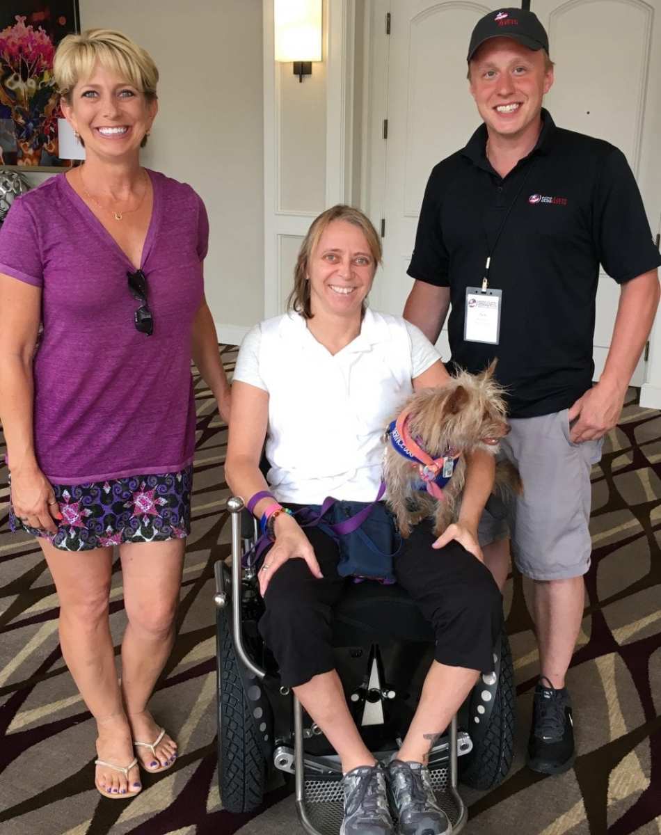Anne Von Rosen, with Stacy Campo, Zach Reeves of Segs4Vets and her dog Lily