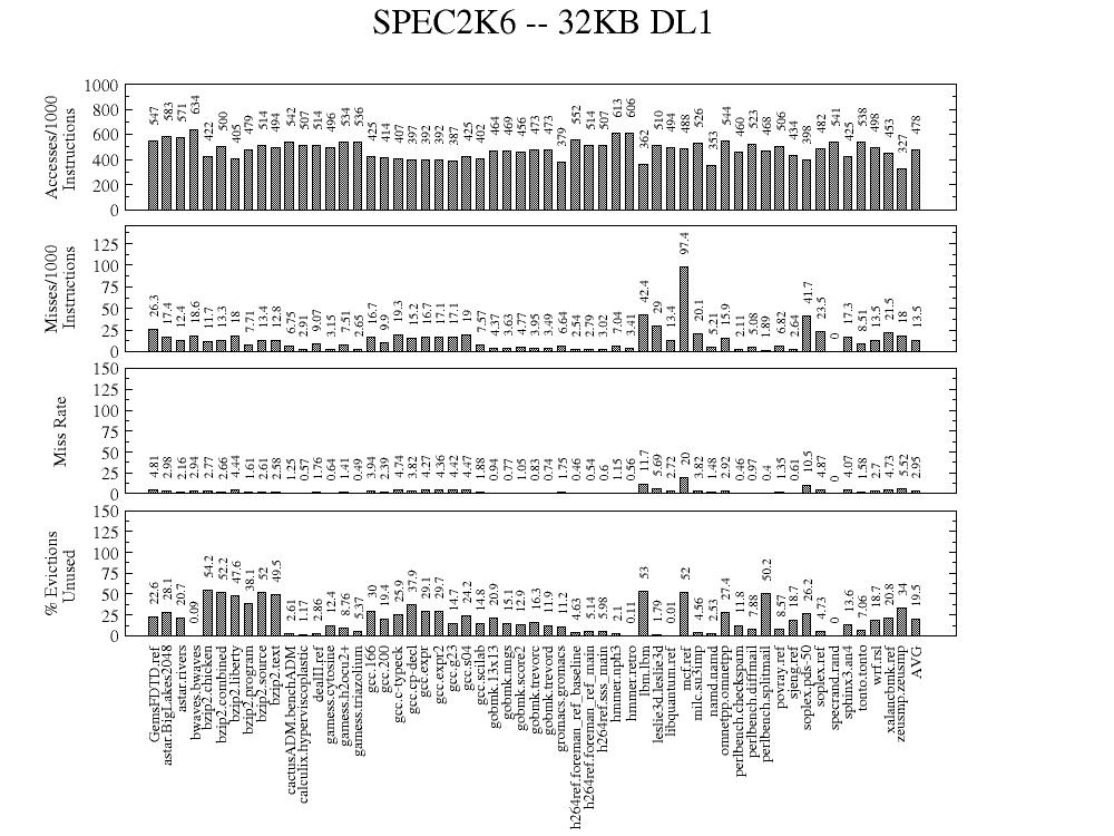 So to warm up a 1MB L2 (16384 cache lines) , you'd need to simulate at least (1000/13.5) * 16384 = ~1.2M instructions before the cache would usually be warmed up. This of course ignores things like locality of access, etc that would require more instructions be simulated. But given the noise already present in most academic studies, I didn't worry about it too much. On Wed, Sep 25, 2013 at 6:46 AM, Jagadish Kotra <[email protected]>wrote: > Thank you Mitch. What was your interval slice size ? I am using 1 Billion > simpoint interval slice. Do you think 1B slice is large enough to not warm > up the caches ? > > Regards, > Jagadish. > > > On Wed, Sep 25, 2013 at 7:17 AM, <[email protected]> wrote: > >> Send gem5-users mailing list submissions to >> [email protected] >> >> To subscribe or unsubscribe via the World Wide Web, visit >> http://m5sim.org/cgi-bin/mailman/listinfo/gem5-users >> or, via email, send a message with subject or body 'help' to >> [email protected] >> >> You can reach the person managing the list at >> [email protected] >> >> When replying, please edit your Subject line so it is more specific >> than "Re: Contents of gem5-users digest..." >> >> >> Today's Topics: >> >> 1. gem5 with simpoint (Jagadish Kotra) >> 2. Re: gem5 with simpoint (Mitch Hayenga) >> 3. Re: Changes in cache resplacement policies >> (Roberto Rodr?guez-Rodr?guez) >> 4. Re: Changes in cache resplacement policies (Dongwoo Lee) >> >> >> ---------------------------------------------------------------------- >> >> Message: 1 >> Date: Tue, 24 Sep 2013 15:58:29 -0400 >> From: Jagadish Kotra <[email protected]> >> To: [email protected] >> Subject: [gem5-users] gem5 with simpoint >> Message-ID: >> < >> cacm86jogvdfqk5tvrkudvoxt9wfysy09lwfewjvn1gczsys...@mail.gmail.com> >> Content-Type: text/plain; charset="iso-8859-1" >> >> >> Hello, >> >> I am trying to run gem5 in SE mode with simpoints enabled. I am able to >> generate simpoints for some spec2006 benchmarks. I can see that after >> generating the simpoints, we have two options to simulate the simpoints >> using detailed cpu. >> >> (1) To do fastfwd using simpoint-mode=fastfwd - This will fast forward >> the >> non-simpoint regions using atomic cpu and then switch to detailed cpu in >> simpoint regions. >> >> Ex: >> ./build/ARM/gem5.opt configs/pharm/se2.py --cfg=configs/pharm/nehalem. >> cfg --cmd=../tests/libquantum_base.armv7a-O3-vfpv3d16-vect -o "15 2" >> --simpoint-mode=fastfwd --simpoint-interval=1000000 >> --simpoint-points=simpoints >> >> (2) To simulate a specific checkpoint using simpoint-mode=checkpoint. >> >> ./build/ARM/gem5.opt configs/pharm/se2.py --cfg=configs/pharm/nehalem. >> cfg --cmd=../tests/libquantum_base.armv7a-O3-vfpv3d16-vect -o "15 2" >> --simpoint-mode=checkpoint --simpoint-interval=1000000 >> --simpoint-points=simpoints --checkpoint-dir=ckpt --checkpoint-num=1 >> >> I am using classical caches in SE mode. Would like to know if using the >> corresponding commands in both the cases would warmup the caches >> automatically or do I need to mention some flag explicitly ? >> >> Regards, >> Jagadish. >> -------------- next part -------------- >> An HTML attachment was scrubbed... >> URL: < >> http://m5sim.org/cgi-bin/mailman/private/gem5-users/attachments/20130924/32f1176b/attachment-0001.html >> > >> >> ------------------------------ >> >> Message: 2 >> Date: Tue, 24 Sep 2013 16:31:51 -0500 >> From: Mitch Hayenga <[email protected]> >> To: gem5 users mailing list <[email protected]> >> Subject: Re: [gem5-users] gem5 with simpoint >> Message-ID: >> < >> canxmxn4dj+dg_ymjz+9fy9ui1ho1vzxpfjhemrj-pj+efp+...@mail.gmail.com> >> Content-Type: text/plain; charset="iso-8859-1" >> >> >> Hi, I'm the person who wrote the config scripts you are using. I don't >> have access to them right at this moment but if I remember correctly.... >> >> #1 would properly warm up the caches. It keeps the caches in the system, >> it just swaps the connection between the atomic or detailed cpu (depending >> on if its within a simpoint region). >> >> #2 does not warm up the caches (though the script could be modified to do >> so). I generally had a large enough simpoint interval for what I was >> studying that the time to warmup the caches had a negligible impact on my >> performance. >> >> >> On Tue, Sep 24, 2013 at 2:58 PM, Jagadish Kotra <[email protected] >> >wrote: >> >> > Hello, >> > >> > I am trying to run gem5 in SE mode with simpoints enabled. I am able >> to >> > generate simpoints for some spec2006 benchmarks. I can see that after >> > generating the simpoints, we have two options to simulate the simpoints >> > using detailed cpu. >> > >> > (1) To do fastfwd using simpoint-mode=fastfwd - This will fast forward >> > the non-simpoint regions using atomic cpu and then switch to detailed >> cpu >> > in simpoint regions. >> > >> > Ex: >> > ./build/ARM/gem5.opt configs/pharm/se2.py --cfg=configs/pharm/nehalem. >> > cfg --cmd=../tests/libquantum_base.armv7a-O3-vfpv3d16-vect -o "15 2" >> > --simpoint-mode=fastfwd --simpoint-interval=1000000 >> > --simpoint-points=simpoints >> > >> > (2) To simulate a specific checkpoint using simpoint-mode=checkpoint. >> > >> > ./build/ARM/gem5.opt configs/pharm/se2.py --cfg=configs/pharm/nehalem. >> > cfg --cmd=../tests/libquantum_base.armv7a-O3-vfpv3d16-vect -o "15 2" >> > --simpoint-mode=checkpoint --simpoint-interval=1000000 >> > --simpoint-points=simpoints --checkpoint-dir=ckpt --checkpoint-num=1 >> > >> > I am using classical caches in SE mode. Would like to know if using the >> > corresponding commands in both the cases would warmup the caches >> > automatically or do I need to mention some flag explicitly ? >> > >> > Regards, >> > Jagadish. >> > >> > _______________________________________________ >> > gem5-users mailing list >> > [email protected] >> > http://m5sim.org/cgi-bin/mailman/listinfo/gem5-users >> > >> -------------- next part -------------- >> An HTML attachment was scrubbed... >> URL: < >> http://m5sim.org/cgi
