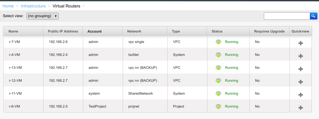 we show project names in Account tab and VPC name (with redundant router state