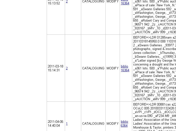 --- Comment #2 from Jane Wagner <[email protected]> 2011-04-06 18:43:38 UTC --- Created attachment 3763 --> http://bugs.koha-community.org/bugzilla3/attachment.cgi?id=3763 screenshot of log viewer on biblio # 6364, showing correct and wrong entries -- Configure bugmail: http://bugs.koha-community.org/bugzilla3/userprefs.cgi?tab=email ------- You are receiving this mail because: ------- You are the QA Contact for the bug. _______________________________________________ Koha-bugs mailing list [email protected] http://lists.koha-community.org/cgi-bin/mailman/listinfo/koha-bugs website : http://www.koha-community.org/ git : http://git.koha-community.org/ bugs : http://bugs.koha-community.org/