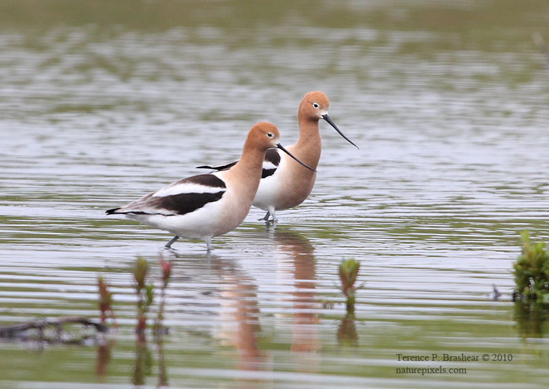 A big thank you to Conny Brunell for posting about the American Avocets at Purgatory Creek in Eden Prairie. I arrived around 2PM, Saturday, May 8, 2010, and the avocets were out on the sand bar with a group of gulls and terns. A second year Ring-billed Gull did not care for the avocets very much and starting attacking them. It drove them off to the west. The American Avocets returned in about a half hour. The gull once again attacked them and they flew to the same area to the west. I decided to go setup with my camera to the west and see what would happen. The birds were not present when I first arrived, but I could make them out on the sand spit. Once again the Ring-billed Gull attacked them and they flew right over in front of me. I took a series of pictures and then a flock of gulls and terns took flight from the sand spit. The Ring-billed Gull was one of the birds and zeroed in on the avocets near me. It drove them off and they flew out to the island directly in front of the bridge near the water fountain. I left at 5PM.