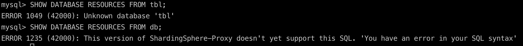 SHOW DATABASE RESOURCES FROM db execute succes.