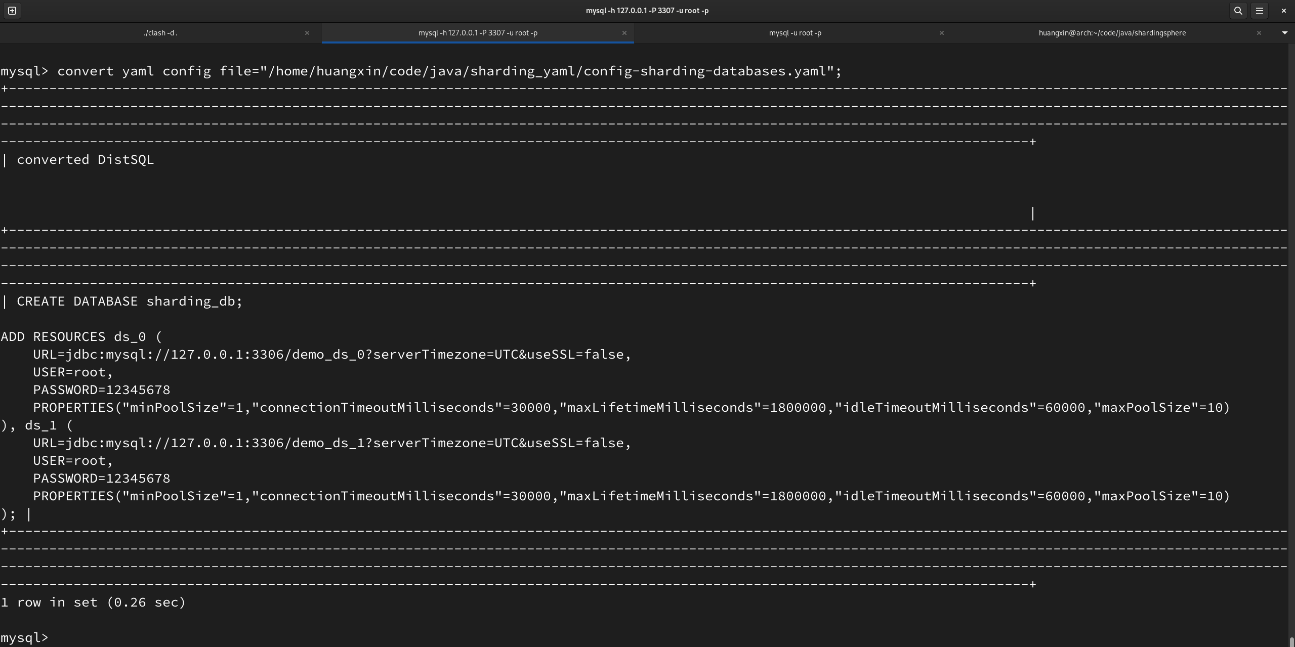 ADD RESOURCE dataSource #17939 In this PR, I finished parsing the CREATE DATABASE and ADD RESOURCE in the yaml file and generating the corresponding distsql statement. Several situations have been considered in my implementation, which will be explained with screenshots next. - If url exists, read url directly instead of host, port, db - If url does not exist, read host, port, db directly - If properties exist, read connectionTimeoutMilliseconds under properties, etc... - If properties does not exist, directly read connectionTimeoutMilliseconds, etc... **Finally, the result of running my code is** - The yaml file that needs to be converted  - The converted DistSQL statement  -- This is an automated message from the Apache Git Service. To respond to the message, please log on to GitHub and use the URL above to go to the specific comment. To unsubscribe, e-mail: [email protected] For queries about this service, please contact Infrastructure at: [email protected]