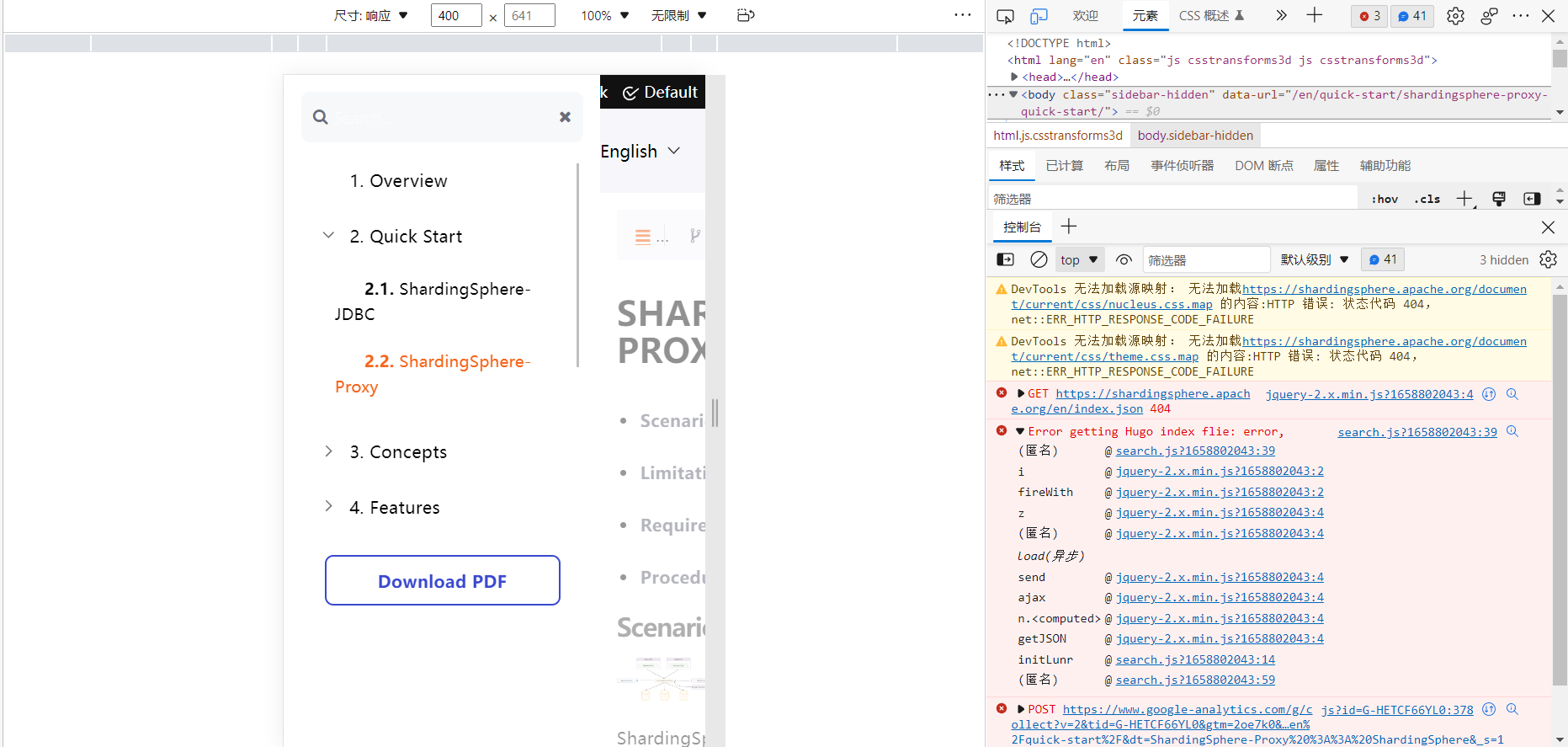 ## Bug Report **For English only**, other languages will not accept. Before report a bug, make sure you have: - Searched open and closed [GitHub issues](https://github.com/apache/shardingsphere/issues). - Read documentation: [ShardingSphere Doc](https://shardingsphere.apache.org/document/current/en/overview). Please pay attention on issues you submitted, because we maybe need more details. If no response anymore and we cannot reproduce it on current information, we will **close it**. Please answer these questions before submitting your issue. Thanks! ### Which version of ShardingSphere did you use? https://github.com/apache/shardingsphere/commit/7a1d8ce8d2e893dd3ff52490ecb6d366eba7a4cf ### Which project did you use? ShardingSphere-JDBC or ShardingSphere-Proxy? ShardingSphere Website ### Expected behavior - When trying to drag the scrollbar of the table of contents on the mobile page, it should work fine. -  ### Actual behavior - The scroll bar of the table of contents cannot be dragged. In devtool I can see that an exception is thrown. ``` Error getting Hugo index flie ``` -  ### Reason analyze (If you can) ### Steps to reproduce the behavior, such as: SQL to execute, sharding rule configuration, when exception occur etc. - Open https://shardingsphere.apache.org/document/current/en/quick-start/shardingsphere-proxy-quick-start/ in Microsoft Edge browser, then open devtool to switch to mobile view. Click on the directory and try to drag the scroll bar i.e. Reproducible. The trigger conditions are not fixed, and can be reproduced by switching between Chinese and English documents through the button in the upper right corner. ### Example codes for reproduce this issue (such as a github link). -- This is an automated message from the Apache Git Service. To respond to the message, please log on to GitHub and use the URL above to go to the specific comment. To unsubscribe, e-mail: [email protected] For queries about this service, please contact Infrastructure at: [email protected]