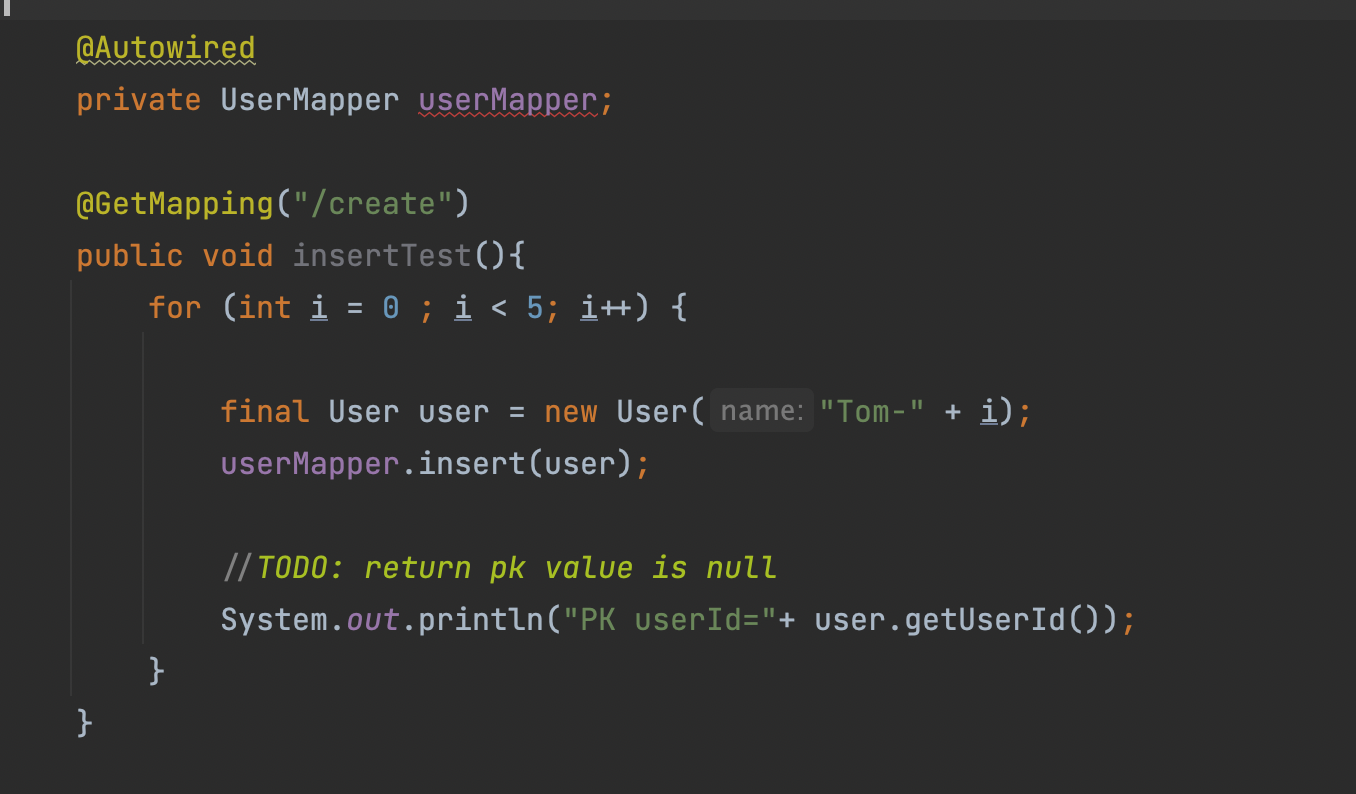 ## Calling the insert method cannot return the PK primary key value.