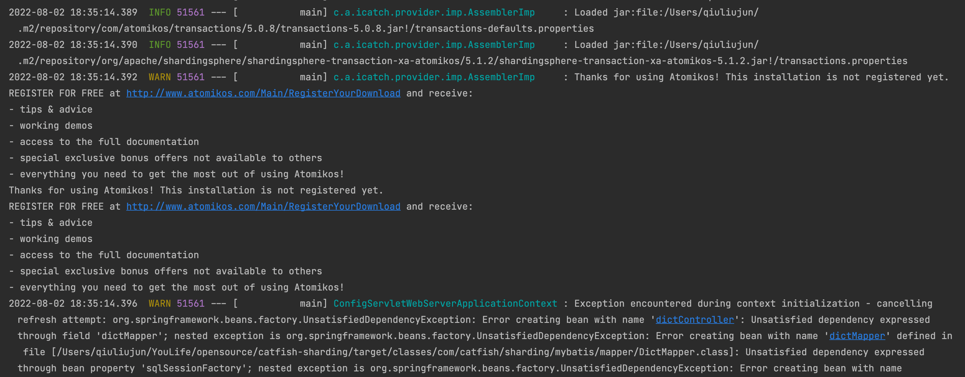 ## ShardingSphere v5.1.2 XA transaction has errors, When spring boot integrations start running. ## The running logger info:     ## So, How should I use XA transactions? Thanks a lot. -- This is an automated message from the Apache Git Service. To respond to the message, please log on to GitHub and use the URL above to go to the specific comment. To unsubscribe, e-mail: [email protected] For queries about this service, please contact Infrastructure at: [email protected]