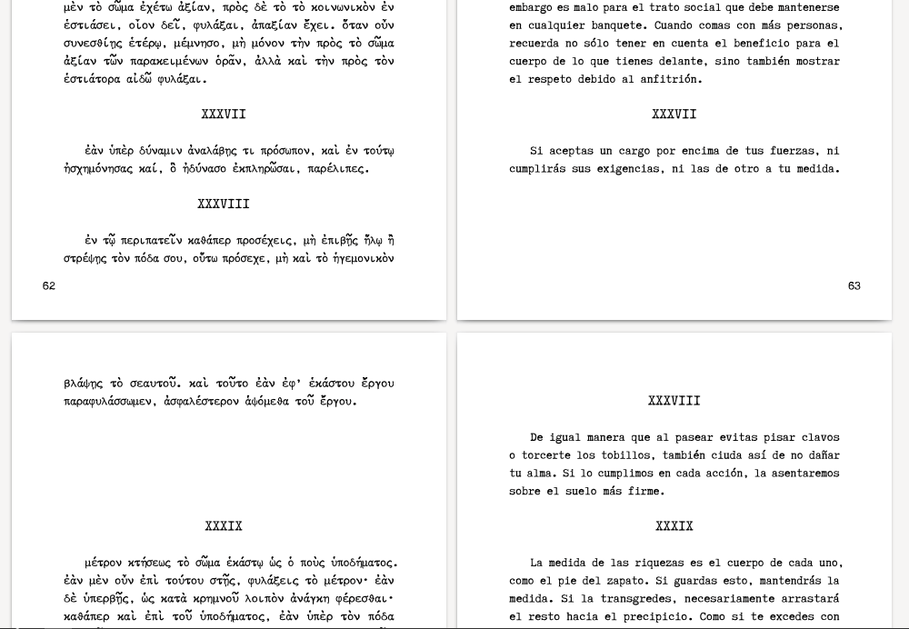 Text is typeset in 30 pages (each language, 60 in total). Everything