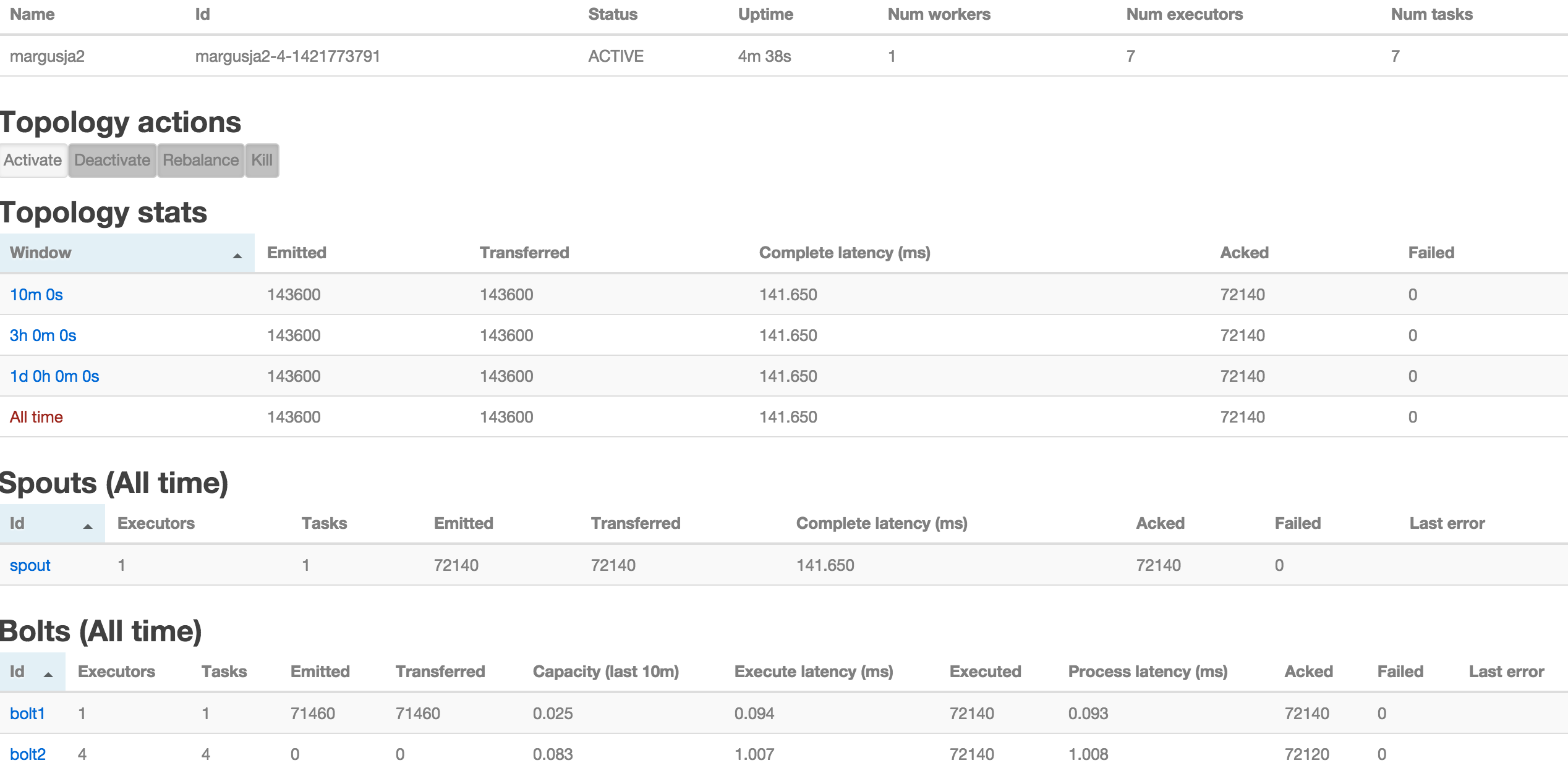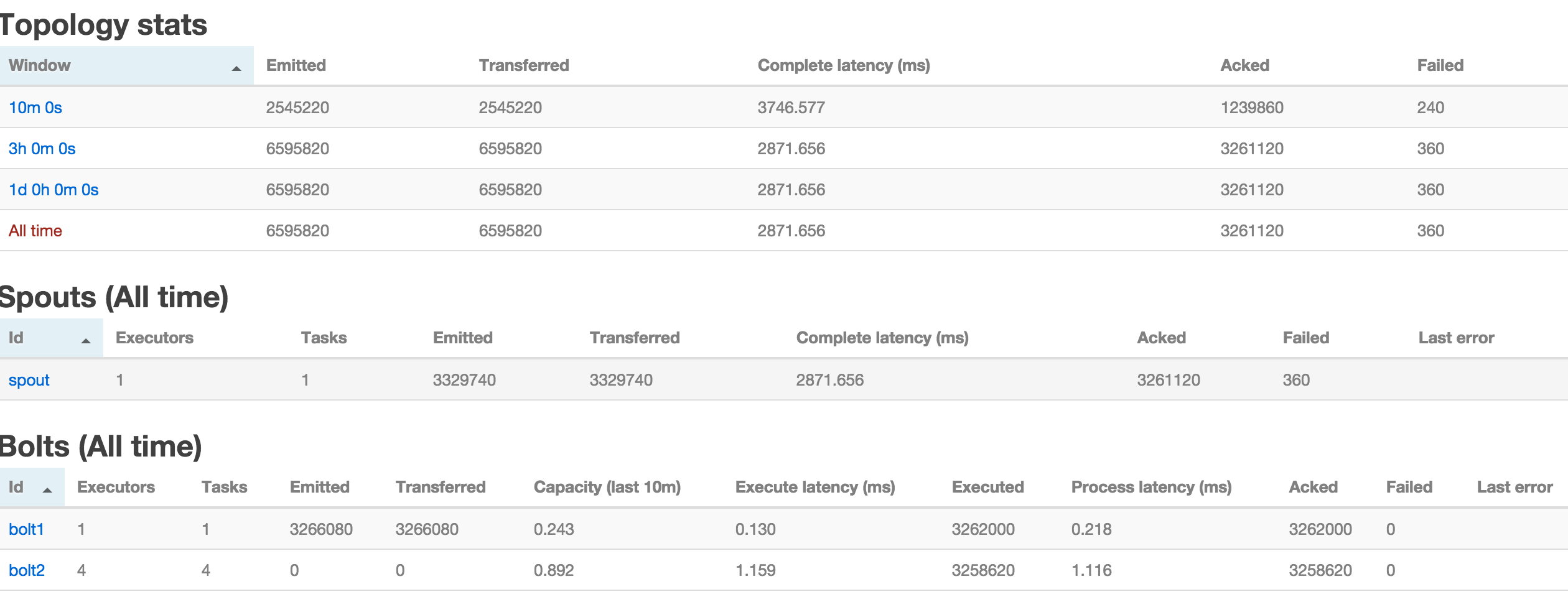 Here we can see that there are some failed messages behind spout. And