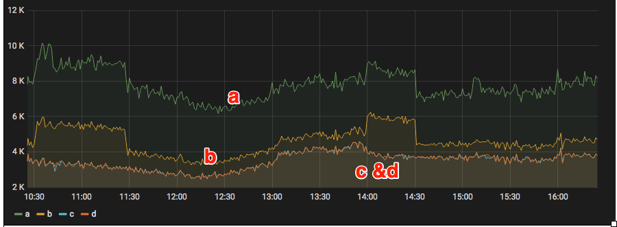 Any suggestions for send message and get TimoutException occasionally?I come up with some TimeoutException for my rocketmq 4.1 cluster. It may happens at any time, rocketmq busy or not. This should be problems of the broker side, because many producers for different topics have this problem at the same time. Exceptions for the producers are such as below: 2018-11-22 14:23:35 WARN rtTime--1 - invokeSync: wait response timeout exception, the channel[192.168.X.X:10911] 2018-11-22 14:23:35 WARN rtTime--1 - sendKernelImpl exception, resend at once, InvokeID: -7824673395974642880, RT: 3000ms, Broker: MessageQueue [topic=broker-c, brokerName=broker-c, queueId=0] The rocketmq cluster consists of 4 brokers, a ,b c and d. a and b is added into the cluster when the cluster startup. c and d was added in for scale out. So you can see more data in for a and b in below picture. For the TimeoutException, only exists in broker-c and broker-d, which have less data than broker-a and broker-b. There are some differences for them. 1. broker-a and broker-b with redhat 6.8 , broker-c and broker-d with centos 7.4. 2. All topics have queues broker-a and broker-b, and some topics have queues in broker-a, broker-b, broker-c and broker-d. (because of some test topic, broker-a has more data in as below picture shows)